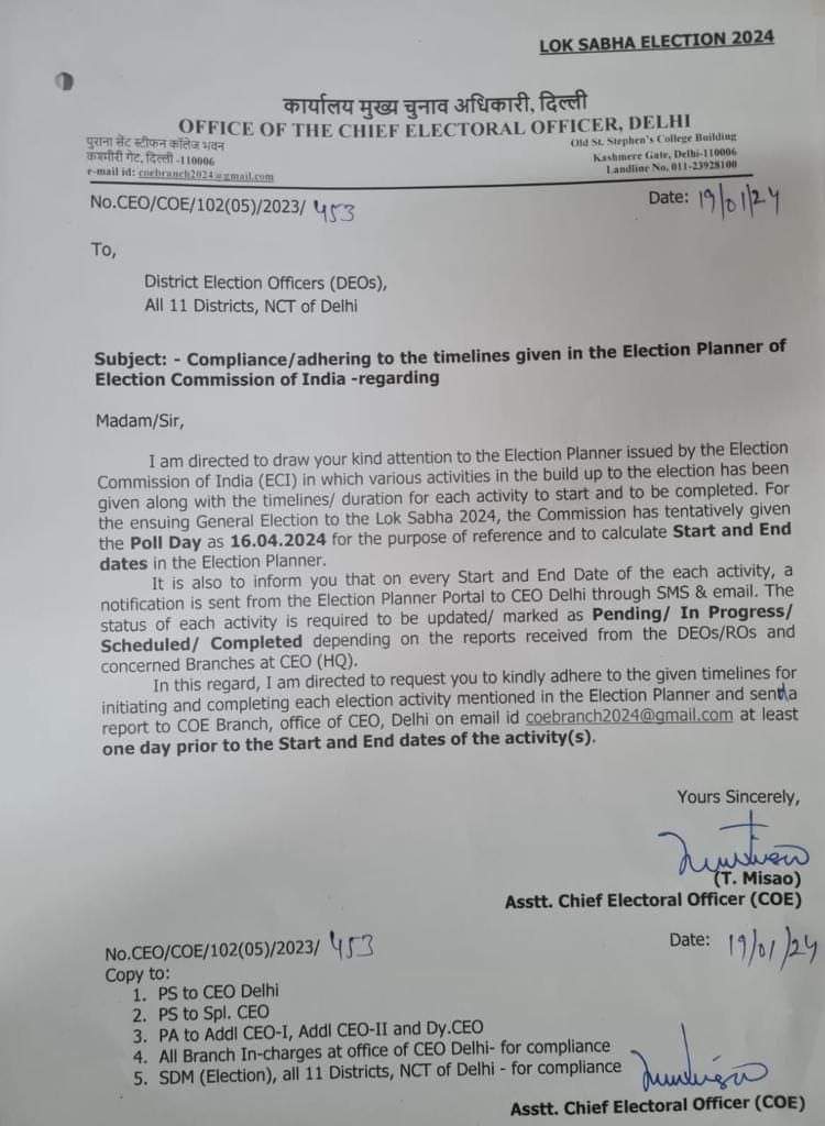 बिग ब्रेकिंग – आम लोकसभा चुनाव 2024 – 16 अप्रैल 2024 को प्रस्तावित,मुख्य चुनाव आयोग ने अधिसूचना जारी कर प्रस्ताव रक्खा,