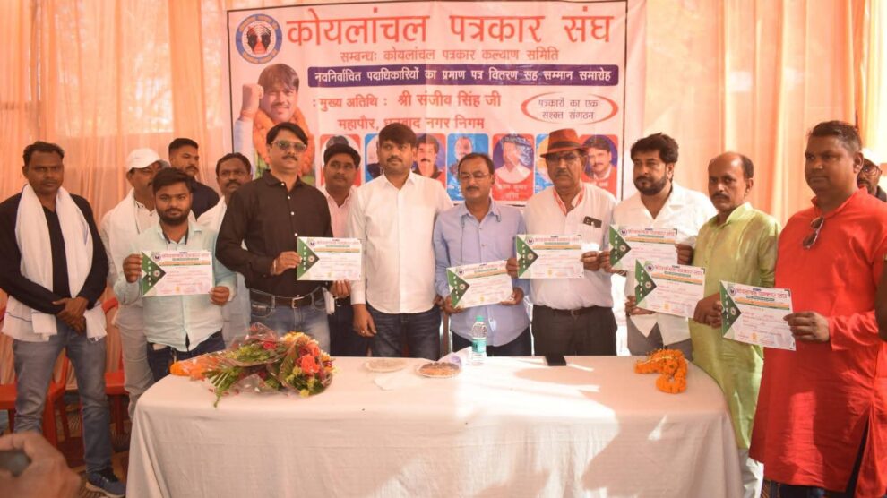 कोयलांचल पत्रकार संघ के नवनिर्वाचित पदाधिकारियों के प्रमाण-पत्र वितरण एवं सम्मान समारोह का आयोजन धनबाद नगर निगम के महापौर संजीव सिंह ने कहा- पत्रकारों का...