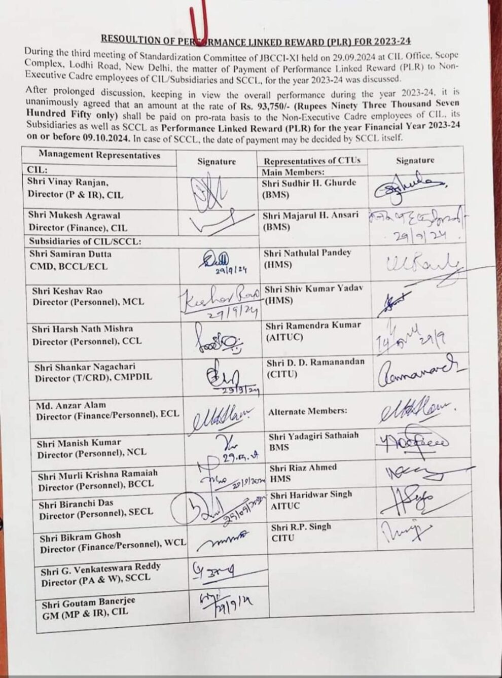कोल इंडिया लिमिटेड के सभी कामगारों को मिलेगा 93,750 रुपए बोनस,