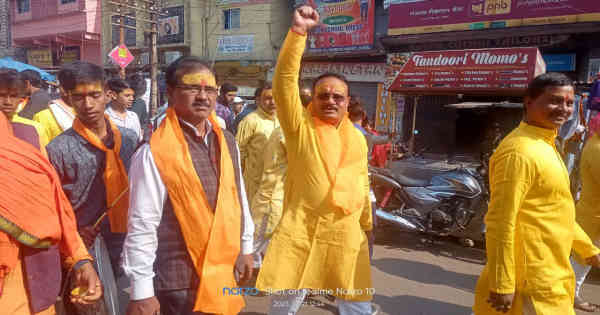 धनबाद — अयोध्या से आया अक्षत कलश, भाजपाइयों ने पुरे झरिया में ढ़ोल, बाजे व गाजे के साथ किया क्षेत्रीय भ्रमण, भाजपा के लगभग सभी बड़े चेहरे इस अक्षत कलश यात्रा के गवाह बने और पुरे झरिया क्षेत्र में ढ़ोल, नगाड़े और पड़ाके के बीच जय श्री राम का उद्घोष एक सुर में उद्घोषित हो रहे थे पूरा का पूरा झरिया का ईलाका जय श्री राम के नारों से मानो गूंज रहा था मौका था अयोध्या से आए अक्षत कलश का ज़ब पूरा झरिया भक्ति के भाव के साथ भक्ति मय हो उठा वहीँ किया महिलाएं और किया बच्चे सभी इस अक्षत कलश के गवाह बने और झांकी स्वरुप एकसाथ चलकर झरिया क्षेत्र का भ्रमण किया और जय श्री राम का खास सन्देश सभी झरिया के वासी को दिया,