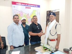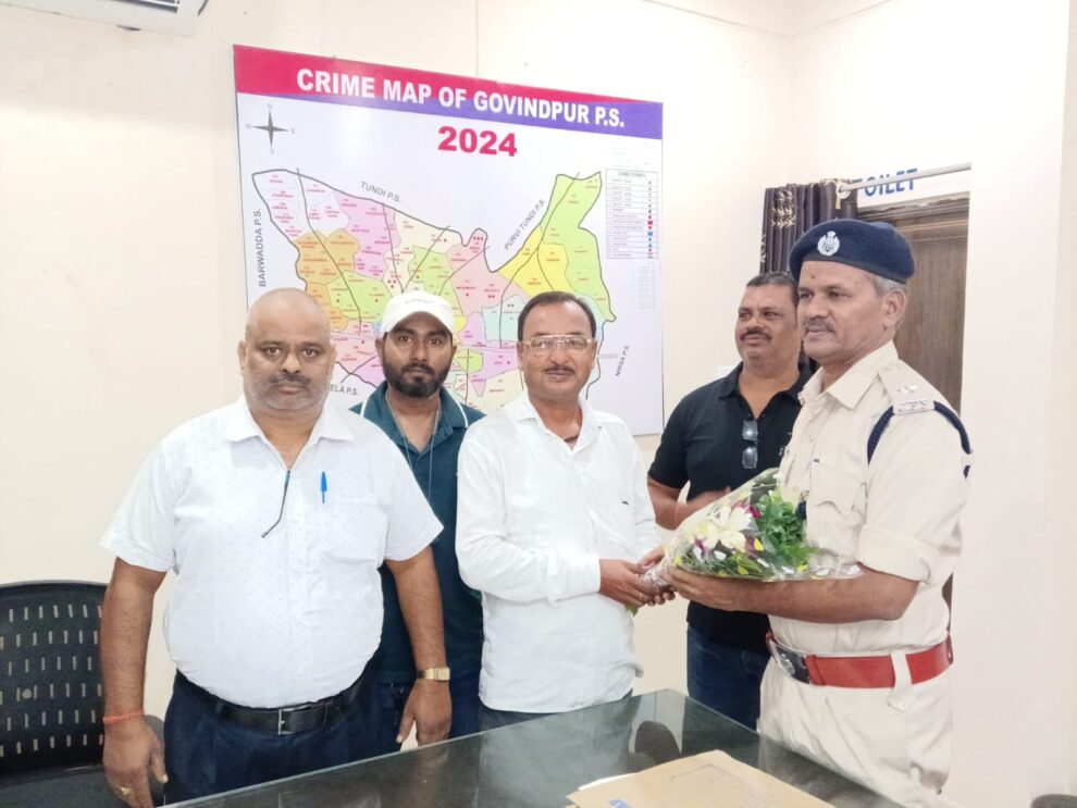 कोलांचल पत्रकार संघ का एक विशिष्ट प्रतिनिधिमण्डल आज क्षेत्रीय कार्यालय गोविंदपुर के प्रभारी अवधेश कुमार के नेतृत्व में गोविंदपुर थाना के प्रभारी मोहम्मद रुस्तम अंसारी से शिष्टाचार मुलाकात किया, इस मौके पर संघ के संस्थापक अध्यक्ष मुख्तार अहमद, सचिव अरुण कुमार, कोषाध्यक्ष कमलेश सिंह, कार्तिक वर्मा, सहायक मनोज कुमार आदि… उपस्थित थे जहाँ की गोविन्द पुर