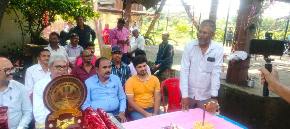 मजदूर नेता देवेंद्र सिंह ने होरलाडीह के सेवानिवृत कर्मी गोपाल बाउरी को बधाई दिया